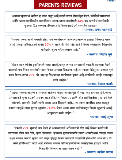 NIKAM TUITION CLASSES is dedicated to helping students achieve academic success through concept-focused teaching and personalized guidance. With experienced faculty, small batch learning, and regular assessments, we create a supportive environment that encourages confidence, clarity, and consistent improvement for every student.